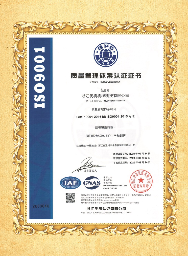 ISO9001质量管理体系认证证书