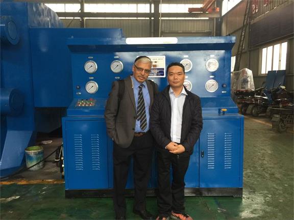 近日,印度(IVC)阀门公司INDIAN VALVE PVT.LTD总裁Mukherjee先生亲自来浙江优机机械科技有限公司验收1月份定制的蝶阀、球阀试验台,这次订购的设备是优机公司国家专利产品:ZL 2014 2 0194312.6,液压系统合理节能,操作人性化设计,是1月份该阀门公司技术部经理Tomy 先生来中国实地考察各大厂家生产工艺及企业资质后精心筛选确定下来的采购设备,这次采购的设备是代替IVC公司原有老式阀门测试台主要水压和气压试验16”-32”的蝶阀和球阀。