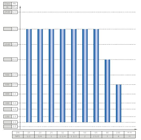 3.2/JWTQ-100型 阀门公称通径与公称压力试验范围