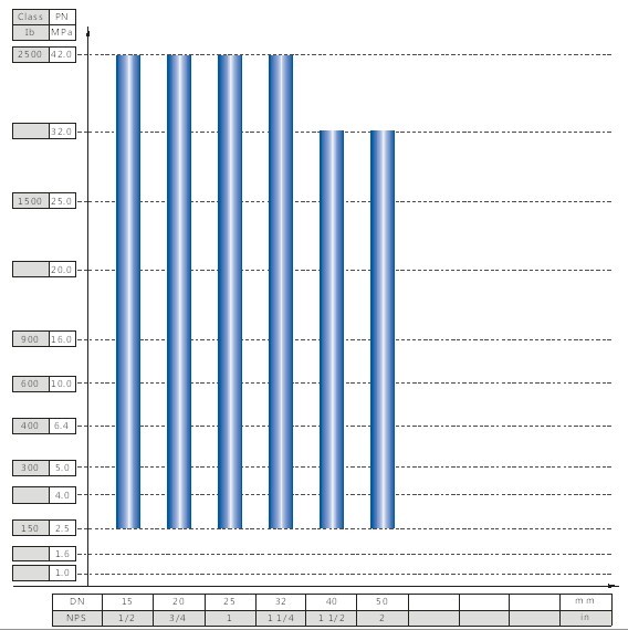 3.1/JWTQ-50型 阀门公称通径与公称压力试验范围