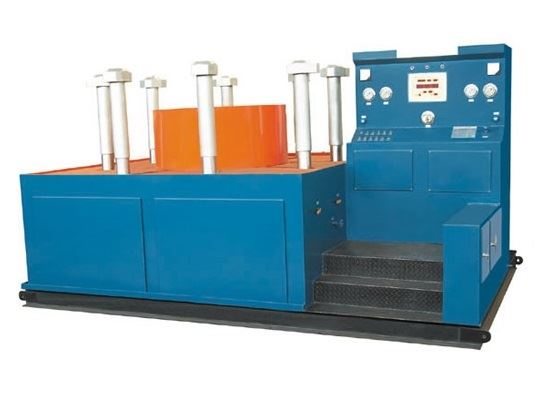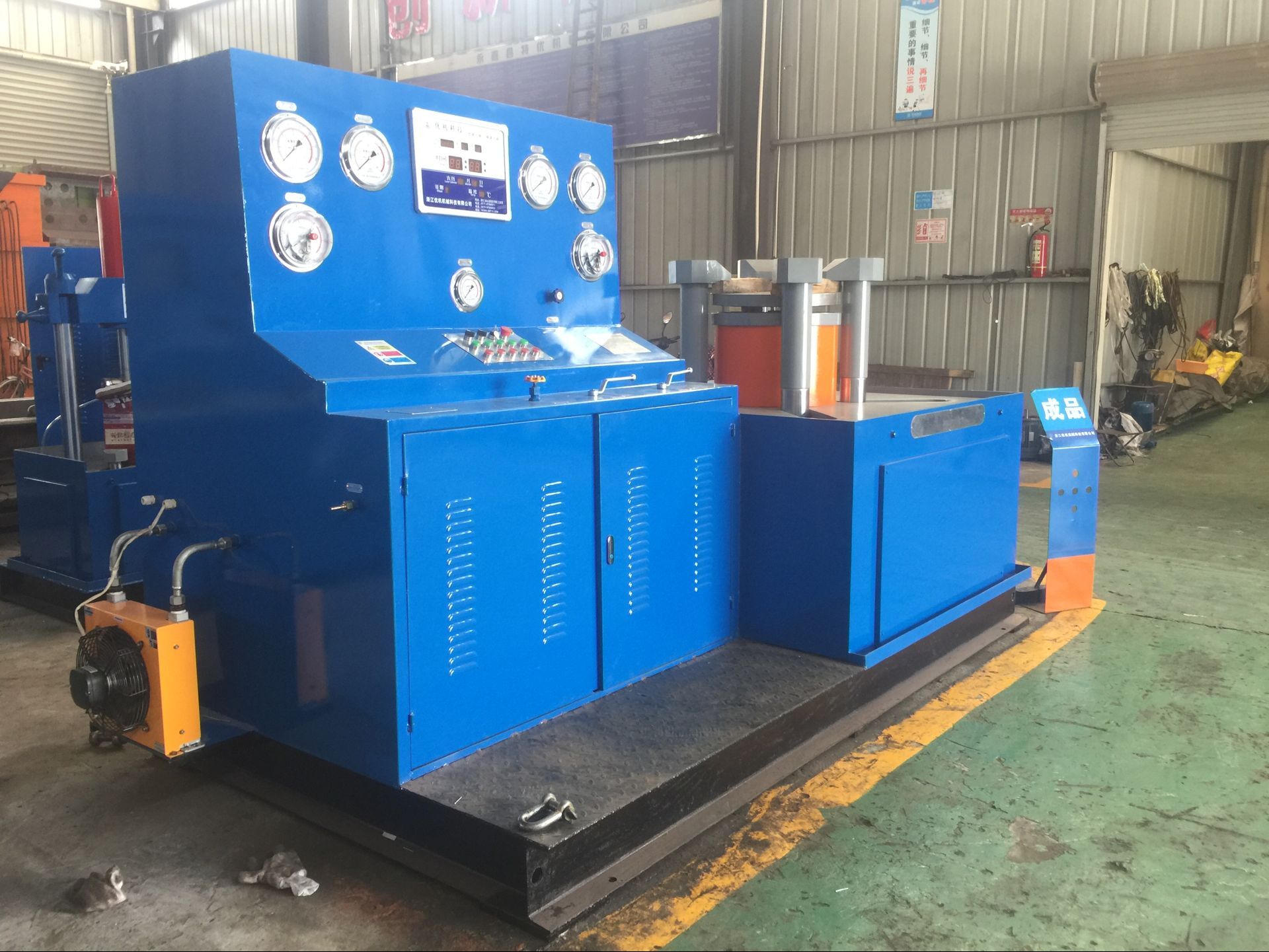 五、测试阀门时,首先根据被试阀门试验压力,要求参照《压紧油缸所需压力对照表》中液压压紧系统压力值,进行增压压力调节,严禁增压压力值超高、防止被试阀门变形损坏。