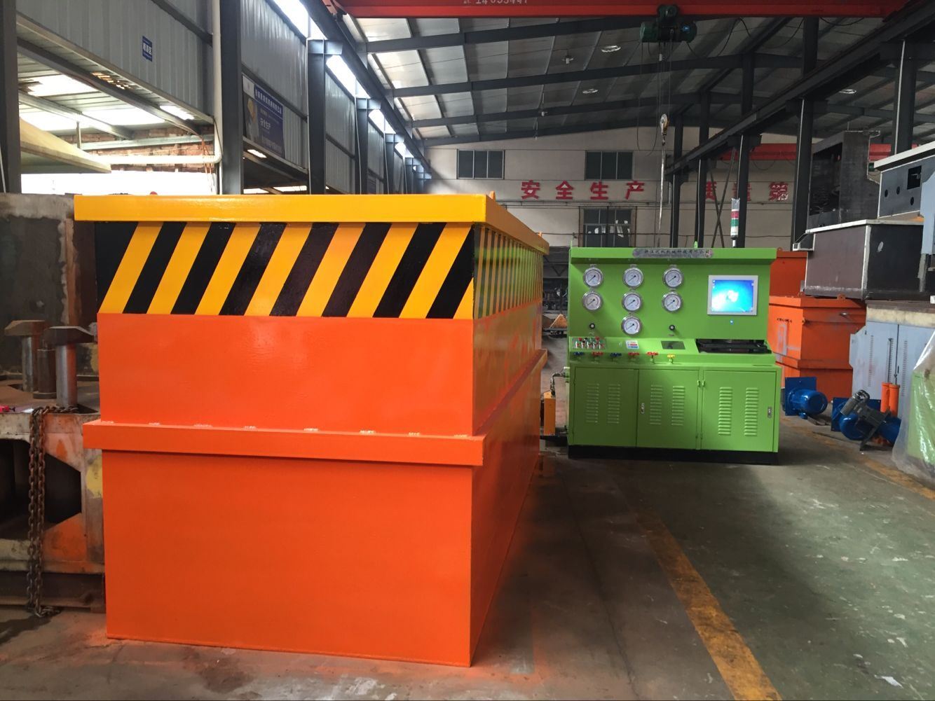 JWZQ型阀门液压试压机是我公司在积累多年生产阀门检测设备技术的基础上按照国家GB/T1 3927 — 92《通用阀门压力试验》和ZBJl6006-90《阀门的试验与检测》的标准规范要求,是公司自主研发的新一代沉水式液压阀门试压机并拥有发明技术专利知识产权,专利号ZL2016 1 0260566.7本机最大特点是将被测试工件浸入水中,在测试过程中可方便目测测试工作是否有泄漏,