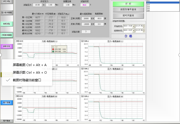 4. 该测试装置应能显控阀门扭矩测试过程中任一开度位置的扭矩值,打印表格上应有最大测试扭矩力,并能输出打印(阀门开度位置与扭矩值对应曲线图)。
